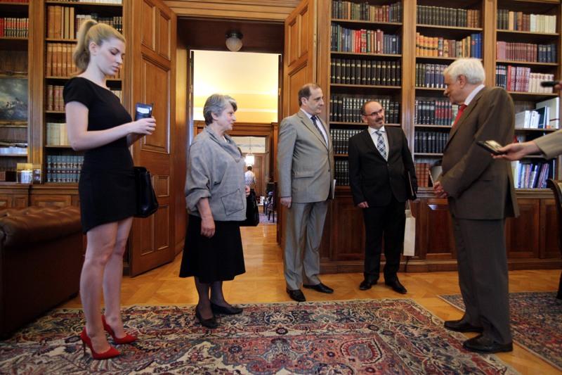Η συνάντηση του Προέδρου της Δημοκρατίας, με την Συνομοσπονδία Θεσσαλών, πέρασε σε δεύτερη μοίρα, λόγω της ξανθιάς καλλονής που «τράβηξε» όλη την προσοχή.