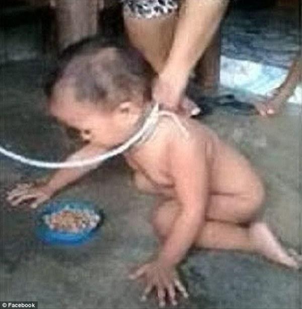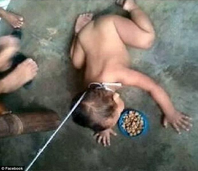 Ένα μωρό είναι δεμένο από την ίδια του την μητέρα με ένα λουρί από το λαιμό στις Φιλιππίνες.