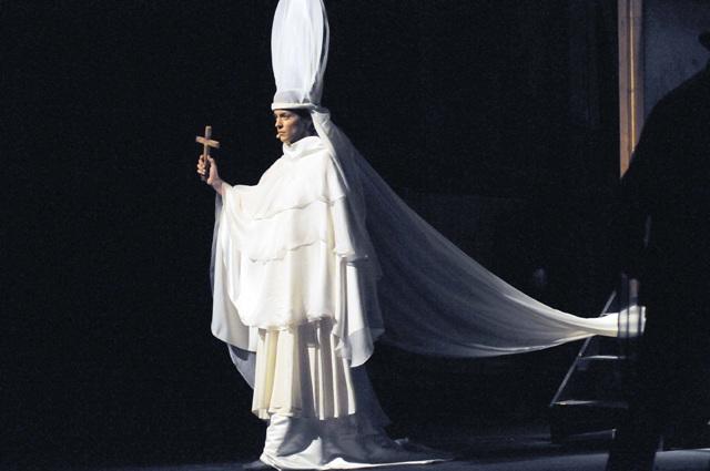 Μετά τις έξι επιτυχημένες παρουσιάσεις του περσινού έργου εν εξελίξει, ο Δημήτρης Μαυρίκιος επανέρχεται με την Πάπισσα Ιωάννα σε πληρέστερη μορφή. Η παράσταση βασίζεται σ’ ένα θεατρικό κείμενο το οποίο προκύπτει ως σύνθεση στοιχείων από το ομώνυμο αφορισμένο μυθιστόρημα (1866), αλλά και από τη ζωή του Ροΐδη με τη μητέρα του. Η συγκλονιστική βιογραφία της Κορνηλίας Ροΐδη μοιάζει, κατά τον σκηνοθέτη, να προσφέρει υλικό για τη θρυλική πάπισσα του Μεσαίωνα, μια γυναίκα που κατόρθωσε να αναρριχηθεί μέχρι το ύψιστο αξίωμα της εκκλησιαστικής ιεραρχίας.
