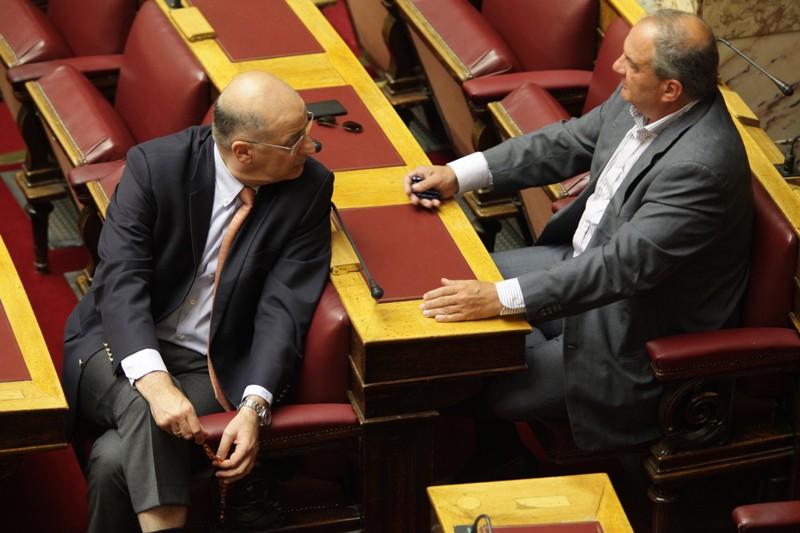 Τα πηγαδάκια του Κώστα Καραμανλή, που καθόταν παραδοσιακά στα ορεινά έδρανα, καθώς και το κομπολόι στο χέρι την ώρα που συνομιλούσε με τον Νίκο Δένδια.
