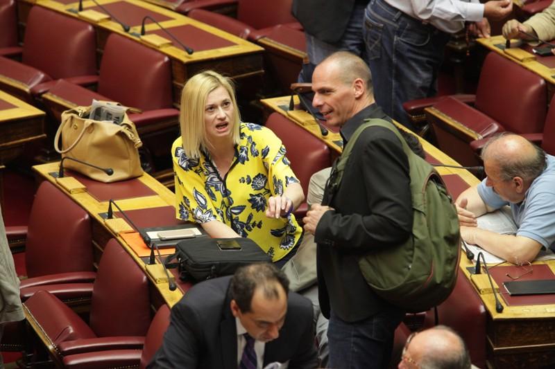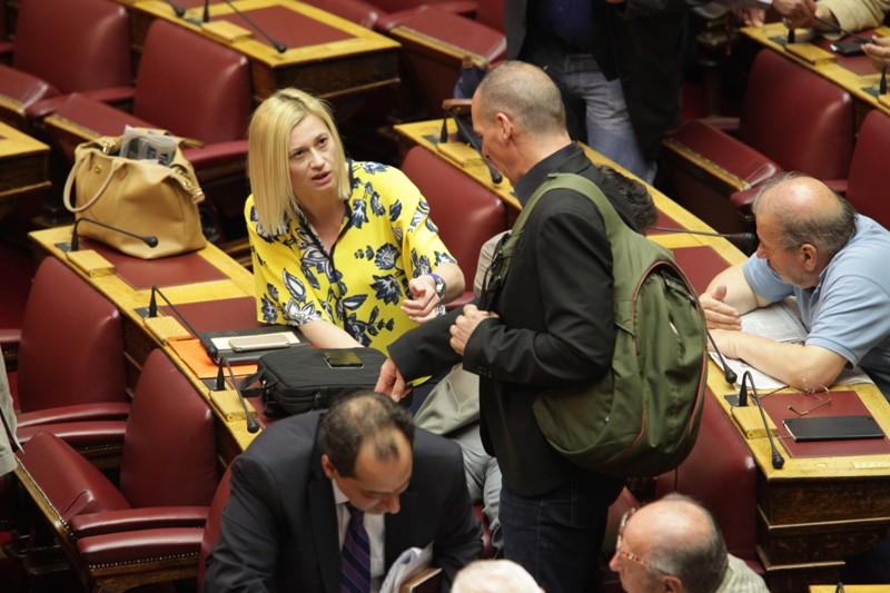 Η βουλευτής Κοζάνης, Ραχήλ Μακρή, συγκέντρωσε πάνω της όλα τα βλέμματα, μπαίνοντας στην αίθουσα της Ολομέλειας με την κίτρινη εμπριμέ μπλούζα και τα μπλε λουλούδια.