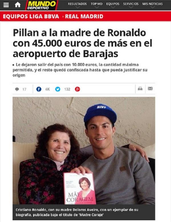 Σύμφωνα με την ισπανική εφημερίδα «El Mundo», η μητέρα του Κριστιάνο Ρονάλντο τα «έχασε» όταν ρωτήθηκε από τους υπαλλήλους για το ποσό και δεν μπόρεσε να δικαιολογήσει την προέλευση των χρημάτων.