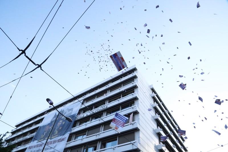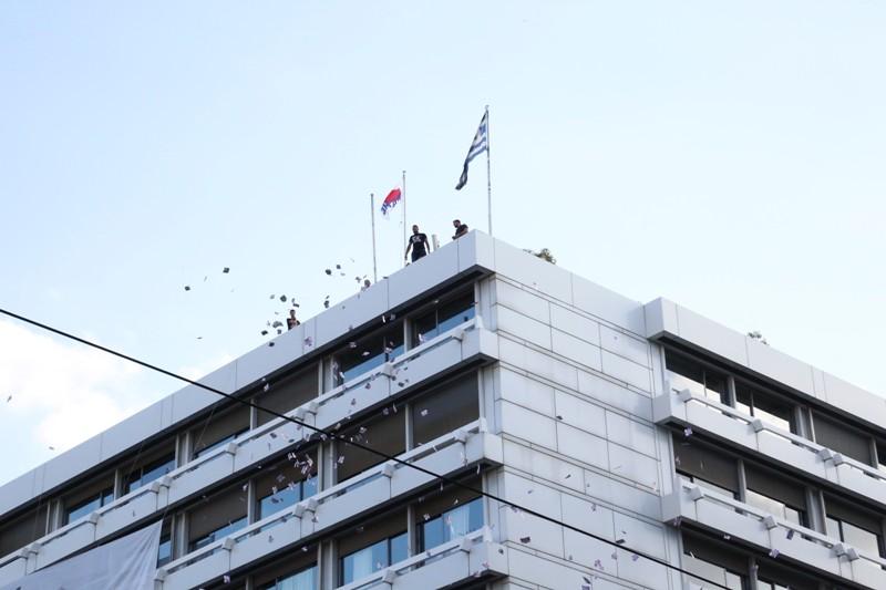 Από τις 7:30 το απόγευμα, τα μέλη του ΠΑΜΕ βρίσκονται στο Σύνταγμα έξω από το Υπουργείο Οικονομικών που παραμένει κατειλημμένο από το πρωί. Μάλιστα στην ταράτσα του υπουργείου, η σημαία της Ευρωπαϊκής Ένωσης έχει υποσταλεί και στην θέση της βρίσκεται εκείνη του Πανεργατικού Αγωνιστικού Μετώπου.