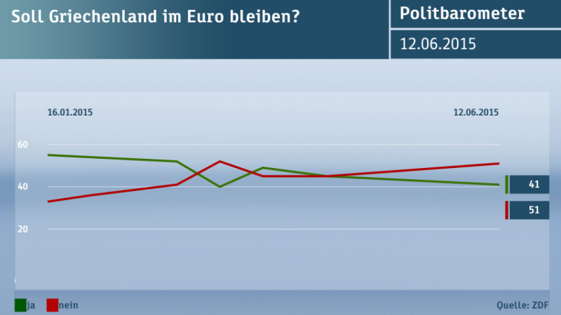 Όπως φαίνεται σε δημοσκόπηση της γερμανικής κρατικής τηλεόρασης ZDF στην ερώτηση «αν πρέπει η Ελλάδα να παραμείνει στο ευρώ»: