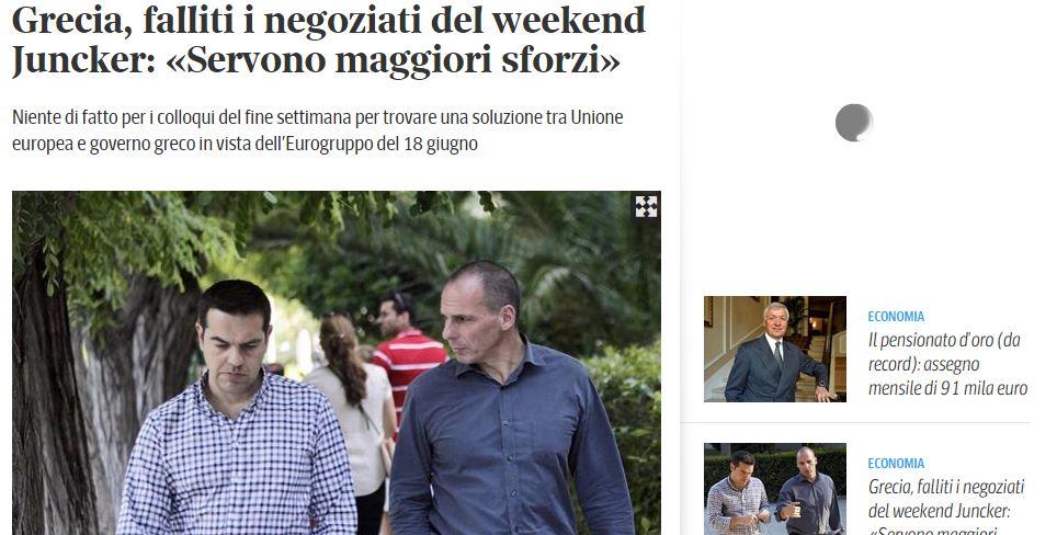 Καμία πρόοδος στις συνομιλίες με στόχο την εξεύρευση λύσης μεταξύ της ΕΕ και της ελληνικής κυβέρνησης ενόψει του Eurogroup της 18ης Ιουνίου.