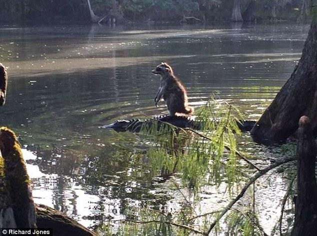 Ένα ρακούν που βρέθηκε στην πλάτη αλιγάτορα σε ποτάμι της Φλόριντα φωτογράφησε ο Richard Jones. Ο φωτογράφος μιλώντας σε εφημερίδα της Φλόριντα, είπε ότι βρέθηκε με την οικογένειά του στον ποταμό Oaklawaha για να παρακολουθήσουν αλιγάτορες και να τραβήξουν φωτογραφίες. Ο γιος του επιχείρησε να βρει μία διαφορετική γωνία για να βγάλει φωτογραφία τον αλιγάτορα που παρατηρούσαν και τρόμαξε ένα ρακούν που κοιμόταν, για να ξεφύγει από τους ανθρώπους το ρακούν πήδηξε στην πλάτη του αλιγάτορα.