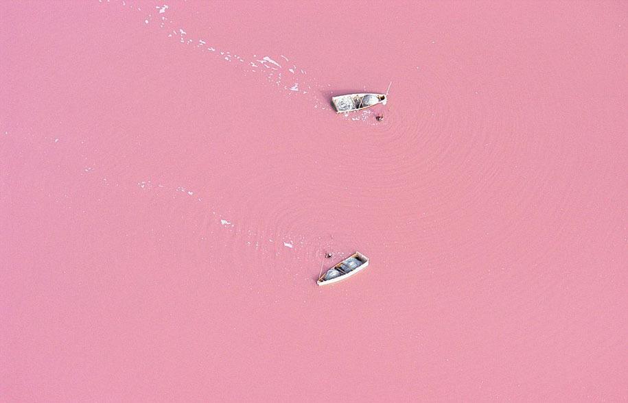 Πολλοί αποδίδουν την ροζ απόχρωση των νερών της σε μια χρωστική ουσία, η οποία παράγεται από τους δύο μικροοργανισμούς Halobacteria και Dunaliella salina, ενώ αρκετοί υποστηρίζουν ότι αναπτύσσονται κόκκινα βακτήρια στα ιζήματα του αλατιού της λίμνης.