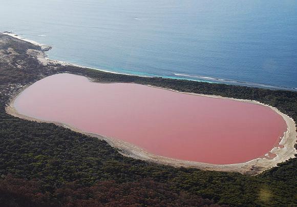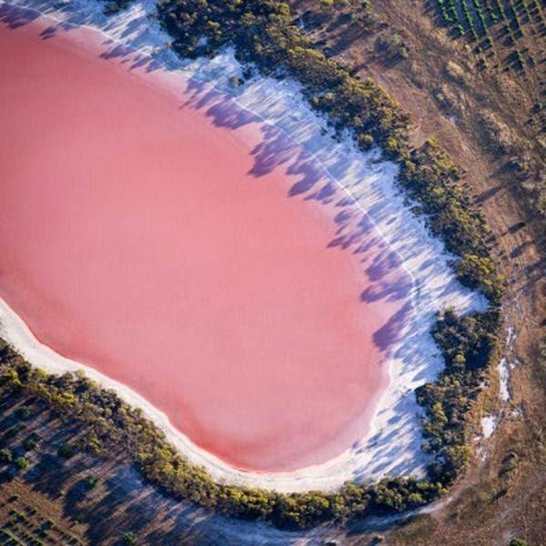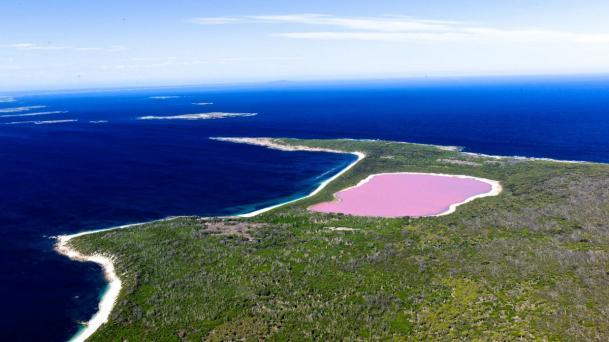 Η εντυπωσιακή ροζ λίμνη Χίλιερ βρίσκεται στο νησί Middle Island στα δυτικά της Αυστραλίας.