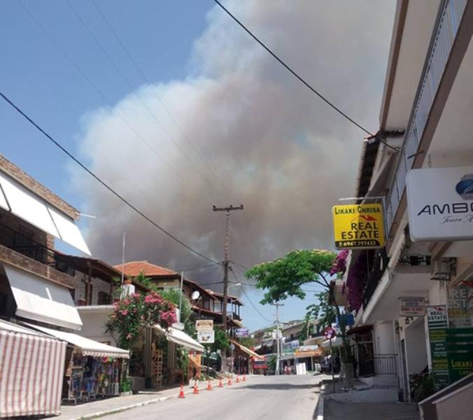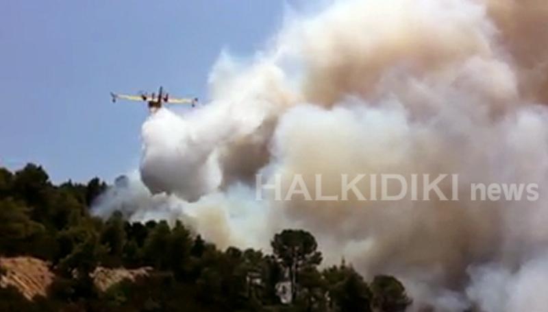Μεγάλη φωτιά κατακαίει πευκοδάσος από τις 12 το μεσημέρι της Τρίτης στην περιοχή Κομίτσα της Ιερισσού στην Χαλκιδική.