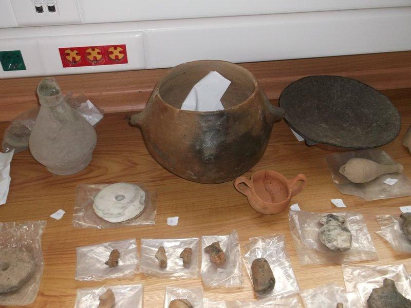 Ειδικότερα, οι αστυνομικοί κατάσχεσαν δύο μεγάλα πήλινα αγγεία προϊστορικών χρόνων, ενεπίγραφες μαρμάρινες στήλες, πήλινα και λίθινα τμήματα ή ακέραια ανθρωπόμορφα και ζωόμορφα ειδώλια, όστρακα, τμήματα αγγείων και ακέραια πήλινα αγγεία, πλήθος λίθινων εργαλείων, υφαντικά βάρη (σφοντύλια, αγνύθες κ.ά.), μία χάλκινη αιχμή δόρατος, πλήθος μεταλλικών αντικειμένων (σιδερένια καρφιά, χάλκινα – σιδερένια κοσμήματα, χάλκινα νομίσματα κ.ά.), οστέινα εργαλεία, κοσμήματα από λίθο ή όστρεο, οστά ζώων, όπως επίσης ανθρωπολογικό και οστεολογικό υλικό.