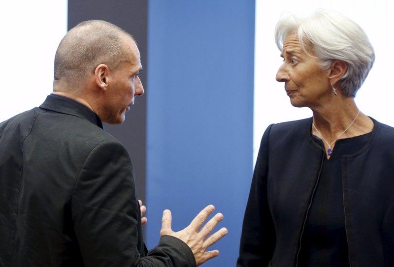Το κλίμα ανάμεσα στην Κριστίν Λαγκάρντ και τον Γιάνη Βαρουφάκη αποτυπώνεται εύγλωττα στις φωτογραφίες του πρακτορείου Reuters.