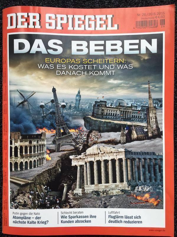 Με τον υπέρτιτλο «Σεισμός» αναμένεται να κυκλοφορήσει στο πρωτοσέλιδο του το γερμανικό περιοδικό Der Spiegel», το Σάββατο 20 Ιουνίου 2015 και με φωτογραφία τα μνημεία της Ευρώπης που «πλήττονται» από σεισμό που έχει ως επίκεντρο την Ακρόπολη.
