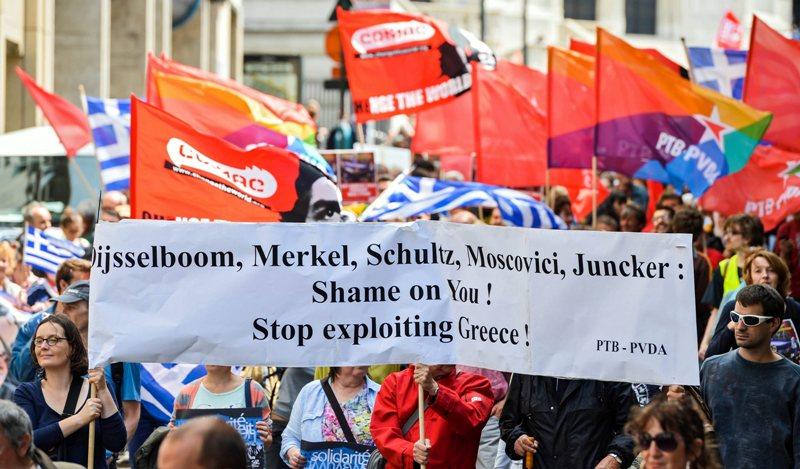 Οι διαδηλωτές ανέμιζαν πολλές ελληνικές σημαίες. Στις διαδηλώσεις συμμετείχαν και Έλληνες πολίτες. “Αλτ στον εκβιασμό της Ευρωπαϊκής Ένωσης”, ήταν ένα από τα συνθήματα που ακούστηκαν στην ολλανδική πόλη.