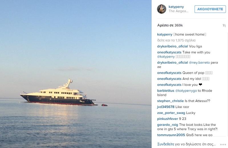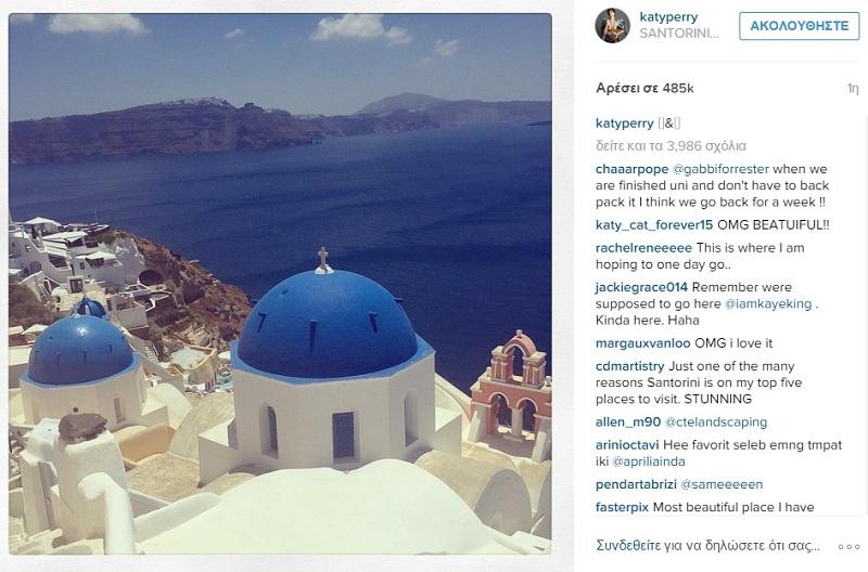 «Ελλάδα, ήσουν έρωτας με την πρώτη ματιά» έγραψε χαρακτηριστικά η ποπ σταρ, Κέιτι Πέρι, που κάνει διακοπές στα νησιά του Αιγαίου.