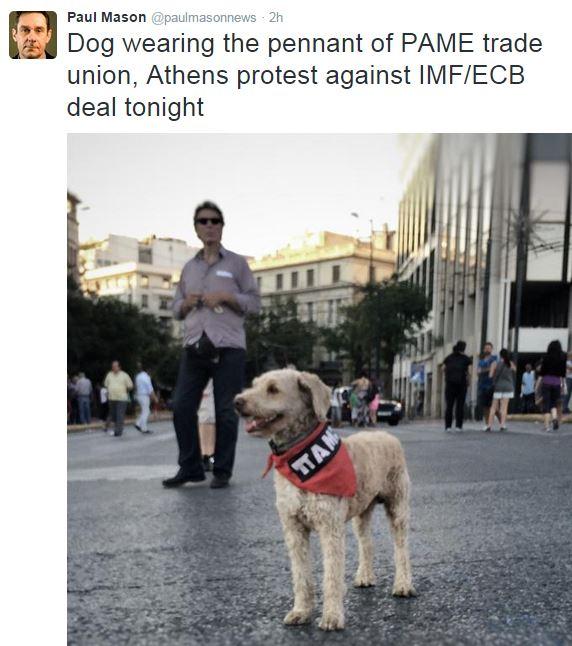 Ο Paul Mason, παρακολούθησε από κοντά την συγκέντρωση του ΠΑΜΕ και ένας σκύλος, ήταν αυτός που του κέντρισε το ενδιαφέρον…