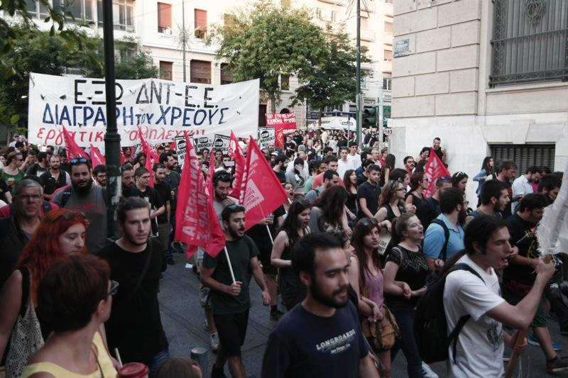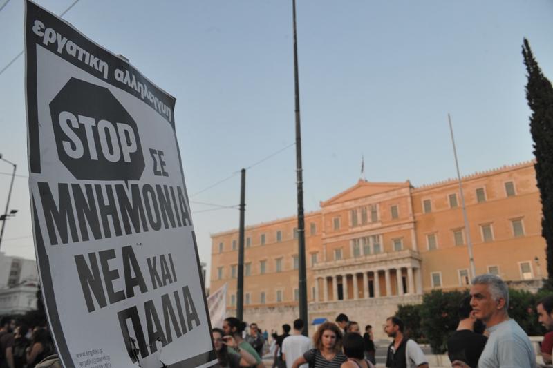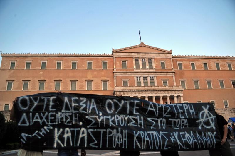 Συγκέντρωση στη Βουλή κατά της λιτότητας πραγματοποίησαν μέλη της ΑΝΤΑΡΣΥΑ με σύνθημα «Όχι στη νέα συμφωνία – μνημόνιο».