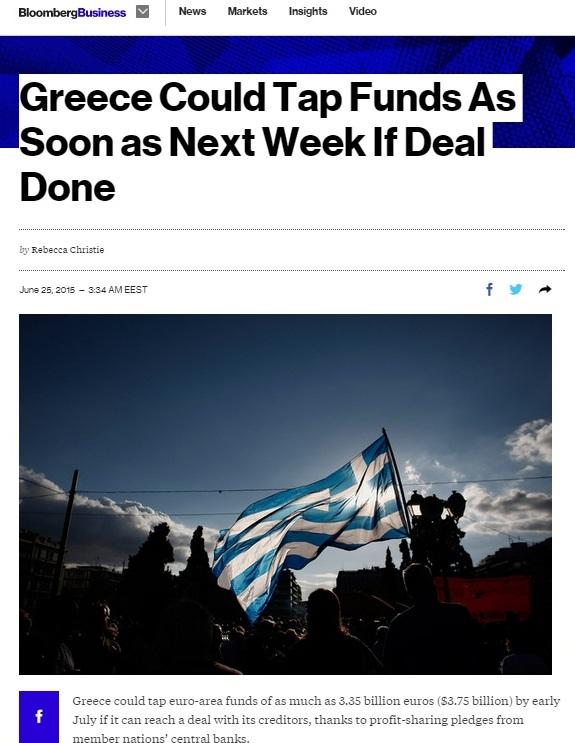 Όπως αναφέρει το πρακτορείο, η Ελλάδα θα μπορούσε να λάβει 3,35 δισ. ευρώ από τα κέρδη που έχουν πραγματοποιήσει οι εθνικές τράπεζες από τα ελληνικά ομόλογα, έως τις αρχές Ιουλίου, αν επιτευχθεί συμφωνία με τους πιστωτές ενώ σε μια τέτοια περίπτωση οι υπουργοί Οικονομικών εξετάζουν να απελευθερώσουν κάποια από τα κεφάλαια εντός των επόμενων ημερών.