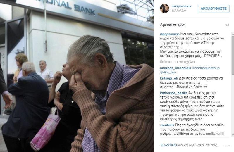 Εμφανώς εξοργισμένος με τις εξελίξεις, ο δήμαρχος Μαραθώνα, Ηλίας Ψινάκης προειδοποιεί την κυβέρνηση μέσω Instagram. «Μουν…, κανονίστε από αύριο να δούμε έστω και μια γριούλα να περιμένει στην ουρά των ATM τη σύνταξή της… Μην μας αναγκάσετε να πάρουμε την κατάσταση στα χέρια μας… ΓΕΛΟΙΕΣ…»