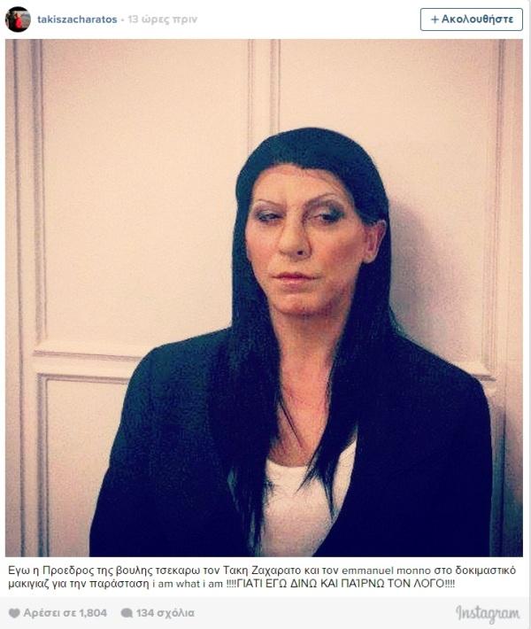 Αρχικά ανάρτησε στο instagram, τον εαυτό του μεταμφιεσμένο σε Ζωή Κωνσταντοπούλου. Τώρα ο Τάκης Ζαχαράτος, θέλησε να γίνει και λίγο Βαρουφάκης.