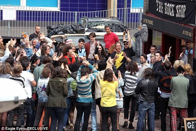 Φαν του συγκροτήματος είχαν συγκεντρωθεί στον τόπο των γυρισμάτων και αγκάλιαζαν και φωτογραφίζονταν με τον διάσημο ηθοποιό.
