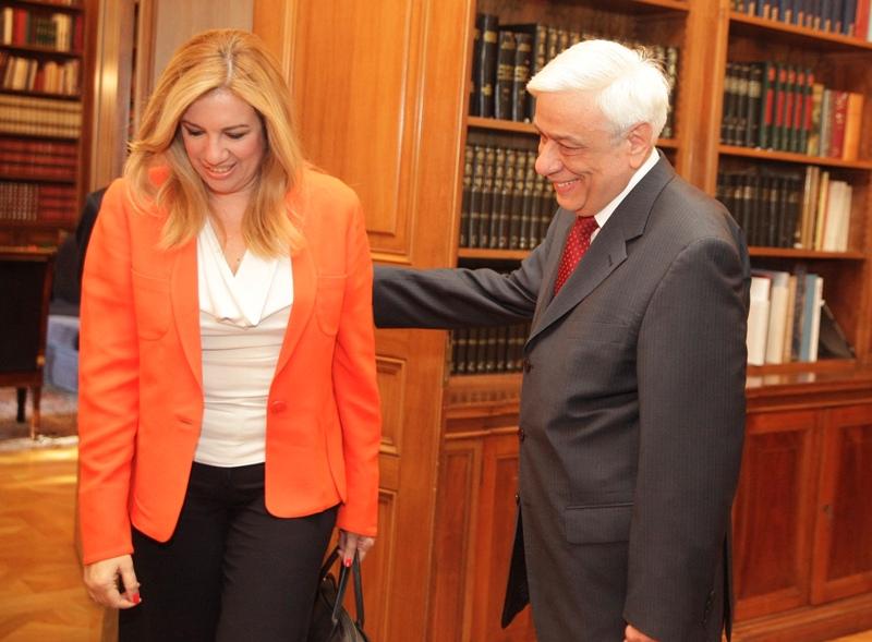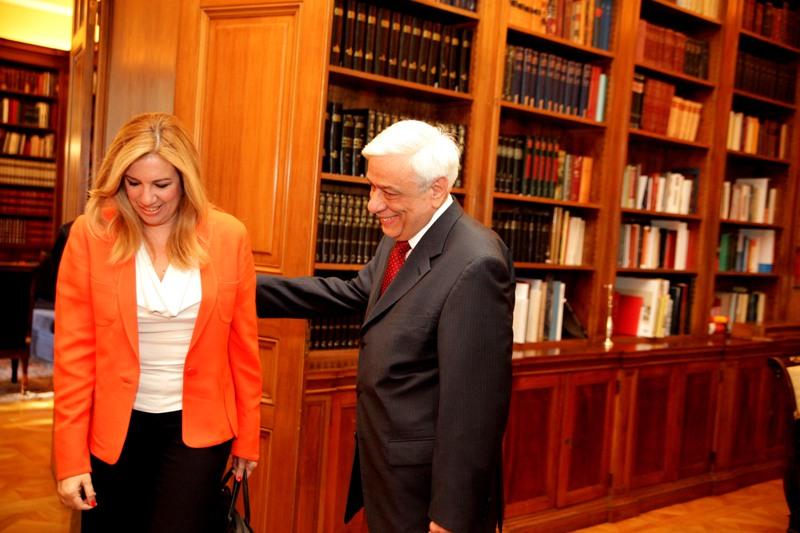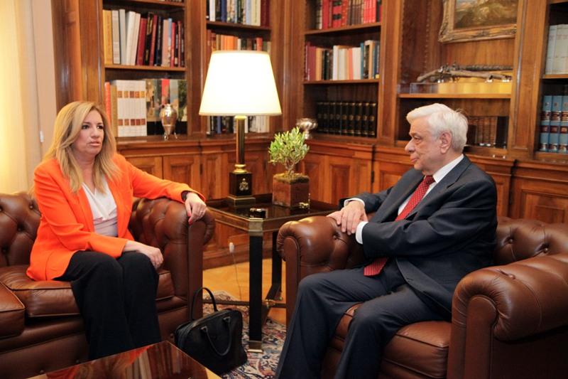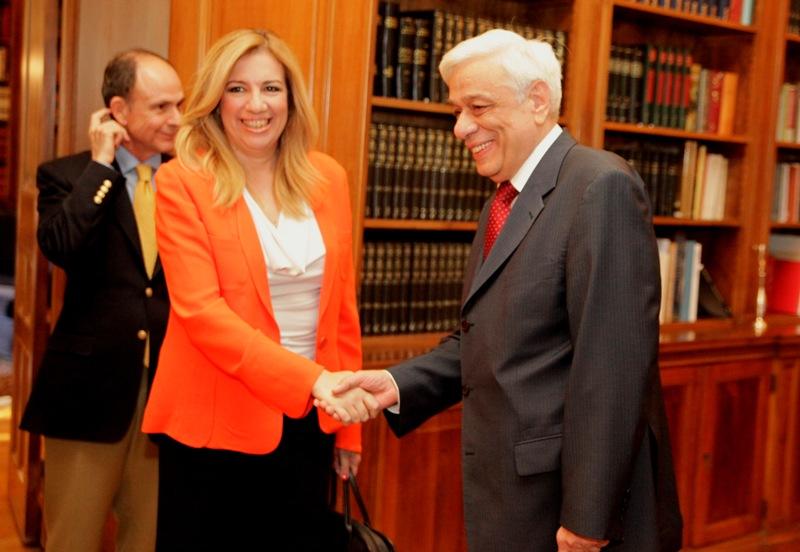 Η πρόεδρος του ΠΑΣΟΚ Φώφη Γεννηματά, αφού μετέφερε στον Πρόεδρο της Δημοκρατίας την ανησυχία του ελληνικού λαού, υπογράμμισε ότι όλοι περιμένουν τώρα αυτή τη συνεννόηση και πρόσθεσε ότι θα ήθελε να τον ενημερώσει για τις επαφές που είχε και τη συμμετοχή της στη Σύνοδο των Ευρωπαίων Σοσιαλιστών Ηγετών πριν από την πρόσφατη Σύνοδο Κορυφής στις Βρυξέλλες.