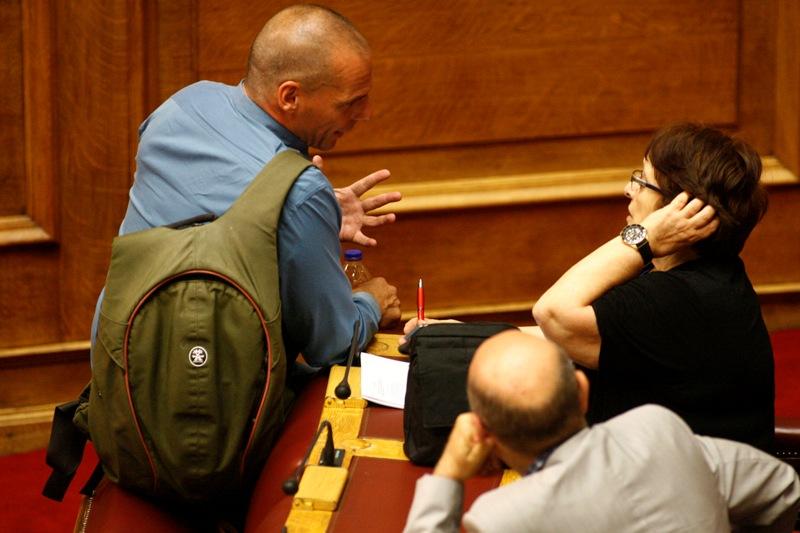 Σύντομη συνομιλία είχαν στην βουλή, κατά τη διάρκεια της συζήτησης για το νομοσχέδιο με τα προαπαιτούμενο για τη νέα συμφωνία της χώρας με τους εταίρους, ο Γιάνης Βαρουφάκης με την Αλέκα Παπαρήγα.