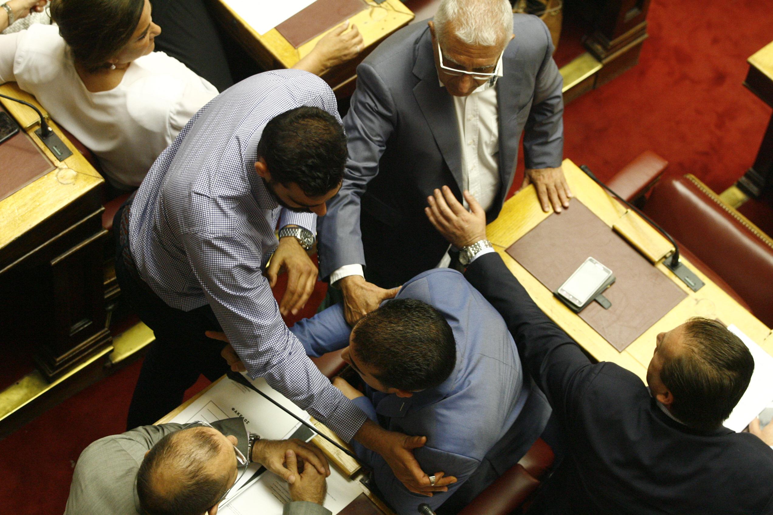 Ανάμεσα στους βουλευτές που παρενέβησαν για να διαχωρίσουν τους δύο βουλευτές και να ηρεμήσει η κατάσταση, ήταν και η Ντόρα Μπακογιάννη.