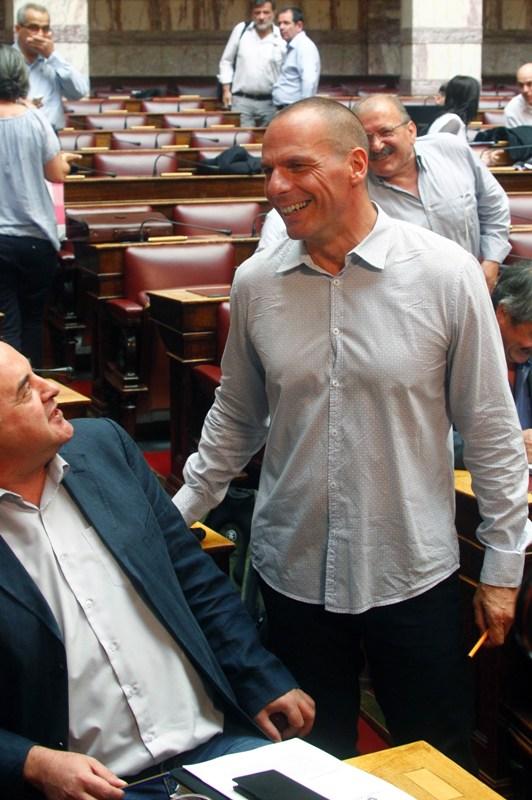 Από το πρωί έχει ξεκινήσει η συνεδρίαση της Βουλής για τη συμφωνία με τους ευρωπαίους εταίρους και ο φωτογραφικός φακός «συνέλαβε» τους πρωταγωνιστές των ημερών σε στιγμές που δείχνουν την ανησυχία, την ένταση και την κούραση που τους έχουν προκαλέσει οι τελευταίες εξελίξεις. Ξεχωρίζουν τα χαμόγελα του Γιάνη Βαρουφάκη και ο ευκλείδης Τσακαλώτος που… σίγουρα θα προτιμούσε να βρίσκεται κάπου αλλού…