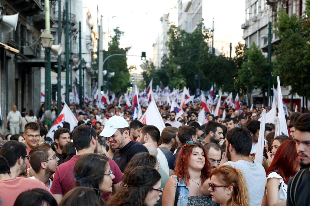 Στη συγκέντρωση συμμετέχουν μεταξύ άλλων η ΠΟΕ ΟΤΑ, το ΠΑΜΕ, η ΑΝΤΑΡΣΥΑ, η νεολαία του ΣΥΡΙΖΑ κ.ά.