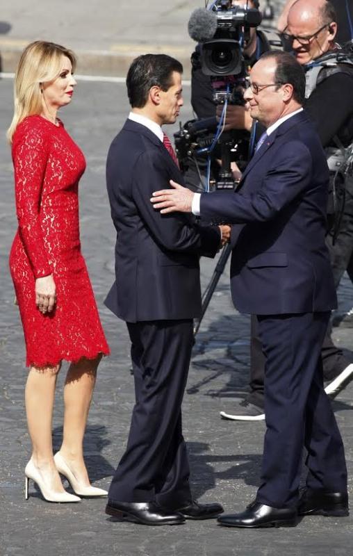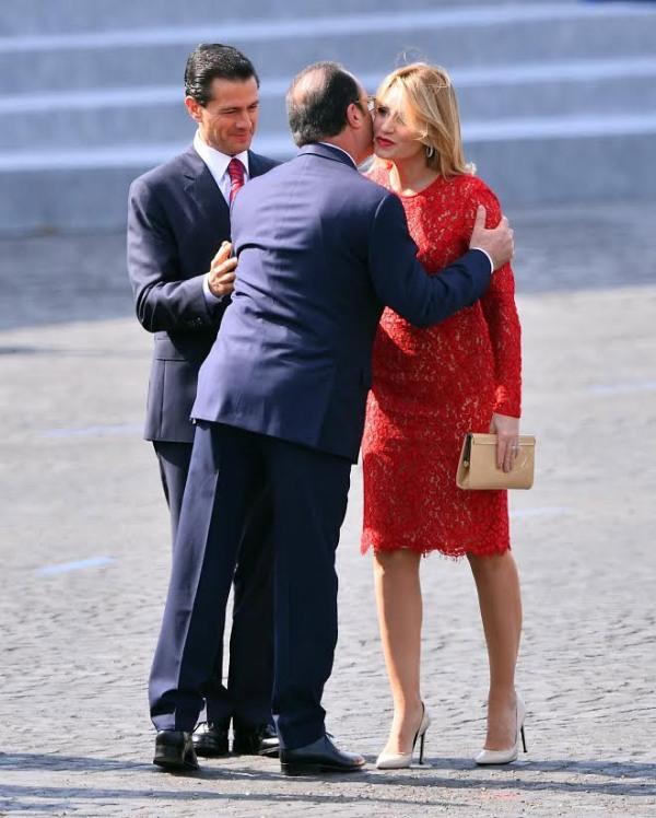Και όταν το προεδρικό ζευγάρι έφτασε στον πρόεδρο και άρχισαν οι καθιερωμένοι ασπασμοί, λίγο έλειψε να δημιουργηθεί διπλωματικό επεισόδιο. Ο Φρανσουά, χαιρέτησε τυπικά τον πρόεδρο του Μεξικό και ύστερα στράφηκε στη σύζυγο του. Την πήρε αγκαλιά και άρχισε να την ασπάζεται. Τυπικά μεν, με πάθος δε. Μάλιστα είναι χαρακτηριστική η φωτογραφία, στην οποία ο Ολάντ αγκαλιάζει το Νιέτο και με τα μάτια «τρώει» από πάνω μέχρι κάτω, τη σύζυγο του.