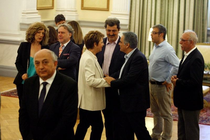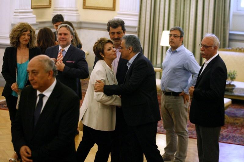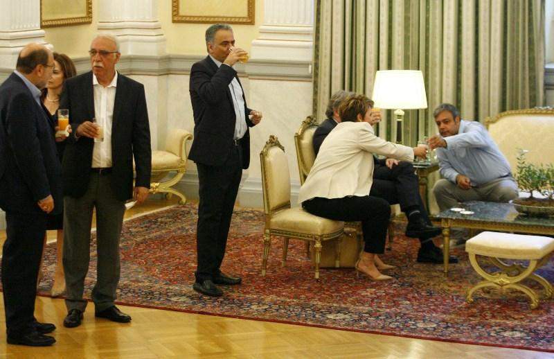 Οι Υπουργοί, παλιοί και νεοφώτιστοι, έφτιαξαν πηγαδάκια όπου συζήτησαν τις εξελίξεις ενώ τα βλέμματα έκλεψε ο Πρωθυπουργός, που φαινόταν πολύ κουρασμένος.