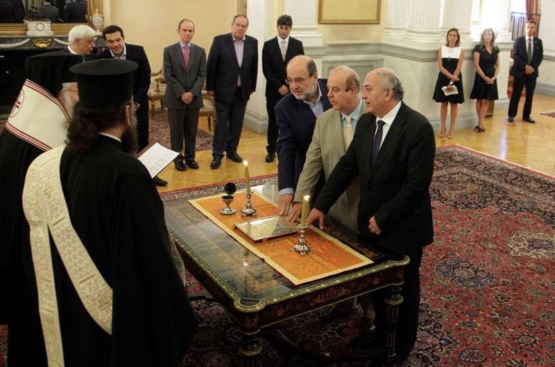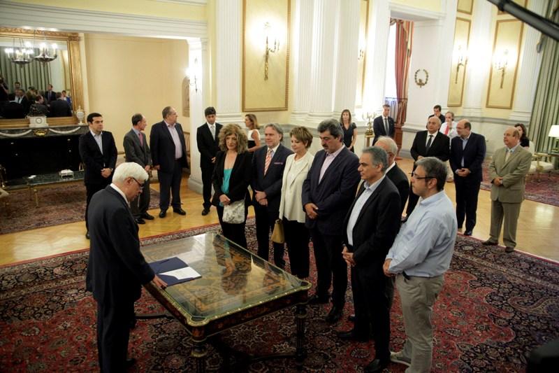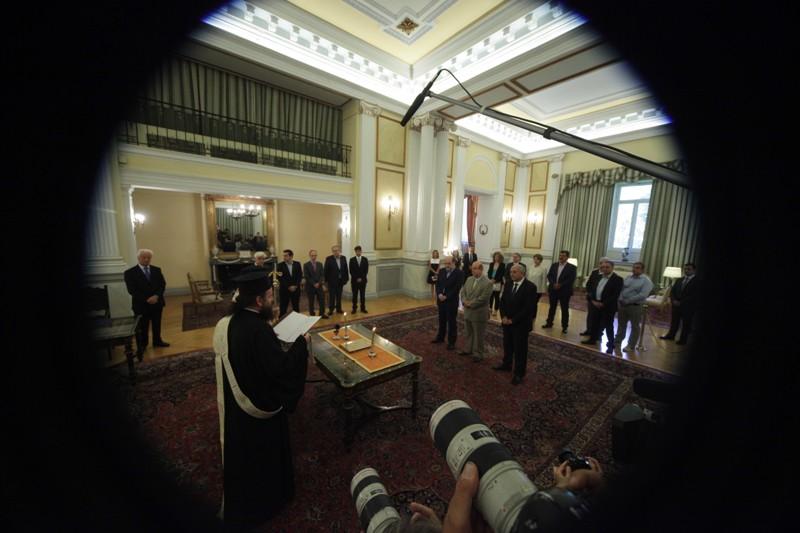 Μπορεί η οκρωμοσία της νέας κυβέρνησης να μην μεταδόθηκε ζωντανά ωστόσο το βίντεο που δόθηκε αργότερα στη δημοσιότητα αλλά και οι φωτογραφίες των πρακτορείων μας δίνουν μια γεύση από την τελετή.