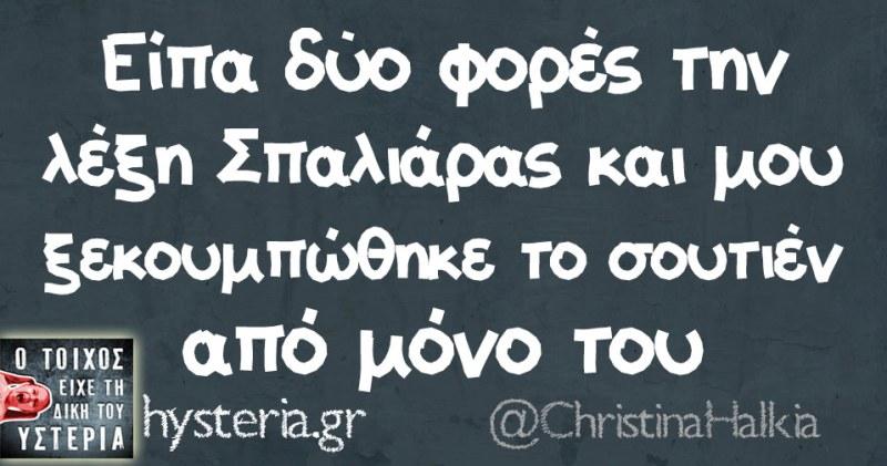 Ο Γιάννης Σπαλιάρας με τη δήλωση του πως έχει πάει με 4.000 γυναίκες, άλοιψε βούτυρο στο ψωμί των πλακατζήδων του internet, οι οποίοι δεν τον αφήνουν σε χλωρό κλαρί. Πολλοί συγκρίνουν τις επιδόσεις του με εκείνες του Πέτρου Τατσόπουλου, ενώ κάποιοι εμπλέκουν τον Γιάννη Σπαλιάρα με τη Ζωή Κωνσταντοπούλου. Όλα αυτά μέσα σε ένα χιουμοριστικό πλαίσιο. Διαβάστε τα καλύτερα και κρατήστε την κοιλιά σας από τα γέλια.