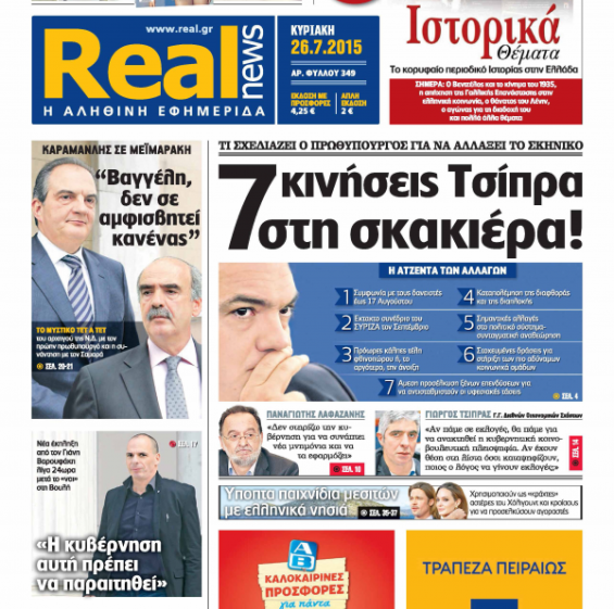 “ΑΥΤΗ Η ΣΥΜΦΩΝΙΑ ΕΙΝΑΙ ΜΕΡΟΣ ΤΟΥ ΣΧΕΔΙΟΥ ΣΟΪΜΠΛΕ ΓΙΑ GREXIT» – ο τίτλος της Real News της Κυριακής όπως τον έγραψε ο συντάκτης”.