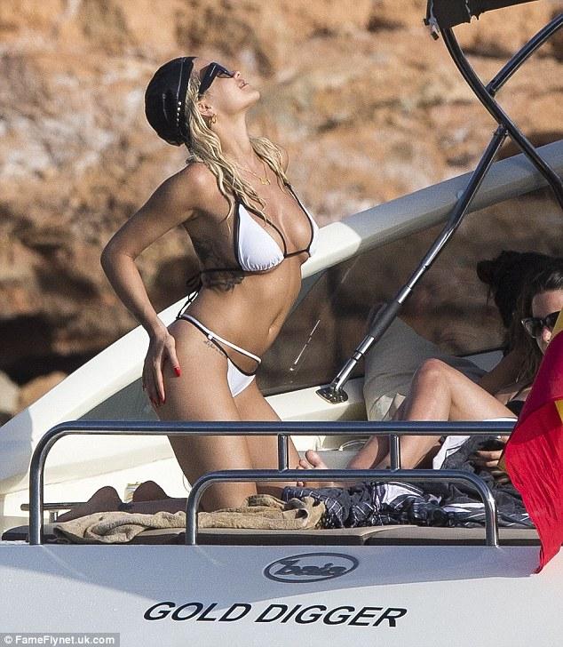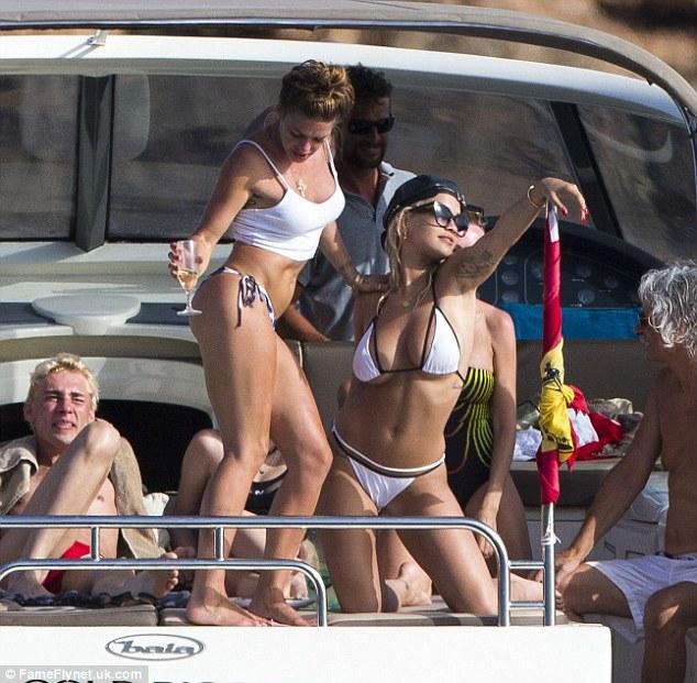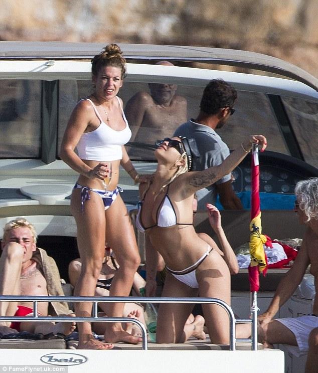 Η 24χρονη τραγουδίστρια μαζί με τις επίσης καλλίγραμμες και σέξι φίλες της αναστάτωσαν τα … νερά της Ίμπιζα με τα παιχνίδια τους και τις αισθησιακές τους πόζες αλλά και τον χορό τους με τα ποτά στο χέρι.