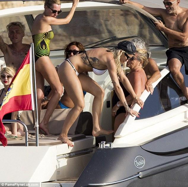 Με ένα σούπερ σέξι λευκό μπικίνι έκανε ηλιοθεραπεία και διασκέδασε με μεγάλη παρέα σε κότερο.