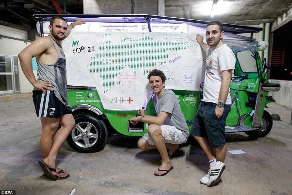 Ένα ταξίδι από την Μπανγκόκ στην Τουλούζη της Γαλλίας μέσω ενός ηλιακά φορτιζόμενου τρίκυκλου ξεκίνησαν τρεις φίλοι την Κυριακή.