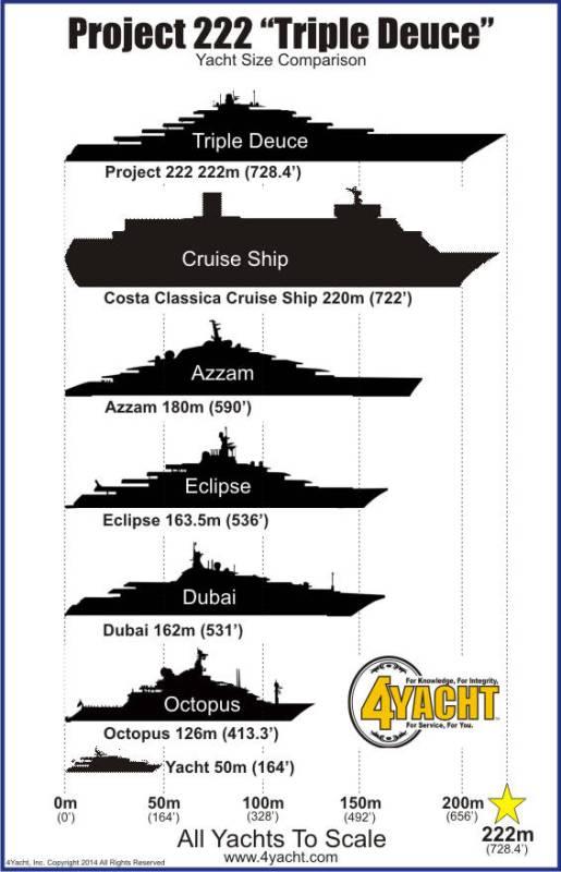 Ονομάζεται «triple deuce», ή σε μια πιο ελεύθερη μετάφραση θα μπορούσαμε να το πούμε και «φουλ του δύο», αφού παραπέμπει σε όρους πόκερ. Μπορεί βέβαια να παραπέμπει και στο μήκος του σκάφους το 222. Ο ιδιοκτήτης του, ένας μεγιστάνας που μέχρι στιγμής διατηρεί την ανωνυμία του, έδωσε εντολή και το TD, ναυπηγείται στη Βόρεια Ευρώπη, κάτω από άκρα μυστικότητα.