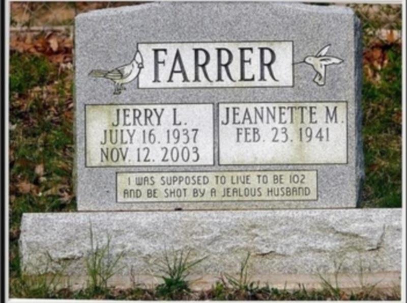 «Έπρεπε να ζήσω μέχρι τα 102 μου χρόνια. Όμως ένας ζηλιάρης σύζυγος με πυροβόλησε» γράφει μια ταφόπλακα.