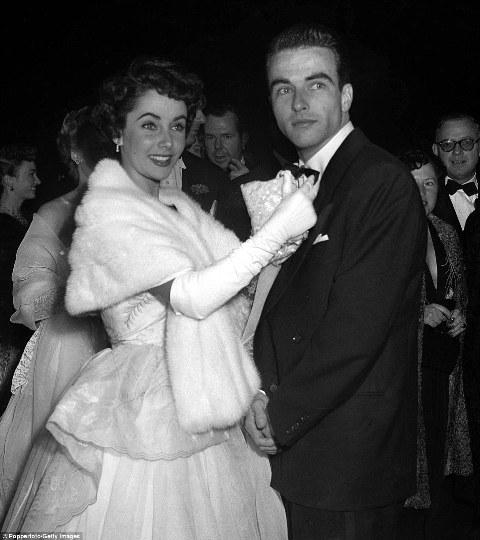Η Ελίζαμπεθ Τέιλορ φτιάχνει τη γραβάτα του Μοντγκόμερι Κλιφτ σε πρεμιέρα το 1949