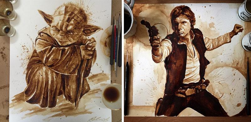 Άλλοι ζωγραφίζουν με τέμπερες, άλλοι με κάρβουνο, άλλοι με μολύβι… Η Μαρία Αριστείδου ζωγραφίζει με καφέ. Και το κάνει υπέροχα…