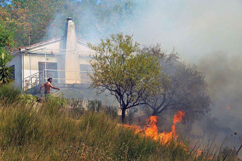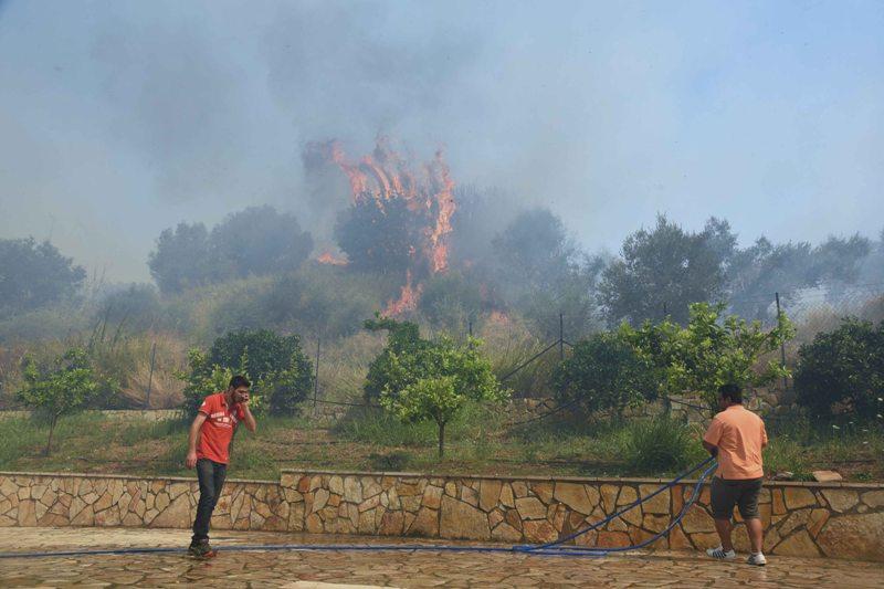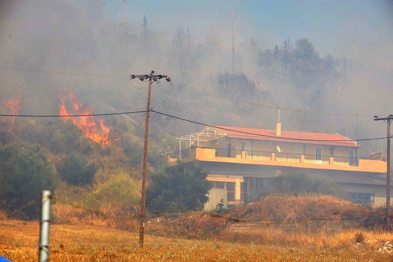 Η φωτιά, λόγω των ισχυρών ανέμων πήρε αμέσως μεγάλες διαστάσεις και οι επίγειες πυροσβεστικές δυνάμεις που αποτελούνται από 40 πυροσβέστες με 20 οχήματα και 16 άτομα πεζοπόρο τμήμα, προσπαθούν να κρατήσουν το πύρινο μέτωπο μακριά από τα σπίτια. Μάλιστα, δύο πυροσβέστες τραυματίστηκαν ελαφρά, κατά τη διάρκεια της μάχης που έδιναν με τις φλόγες.