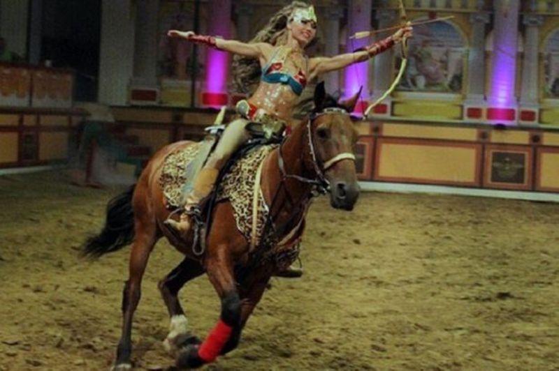 Οι θεατές σε μια επίδειξη με άλογα, στη περιοχή Κρασνοντάρ στη Ρωσία περίμεναν με ανυπομονησία να βγουν οι γυναίκες – κοζάκες και να πραγματοποιήσουν το νούμερο τους. Οι κοζάκοι άλλωστε φημίζονται για την αγάπη που έχουν για τα άλογα αλλά και για τις εξαιρετικές ικανότητες τους.