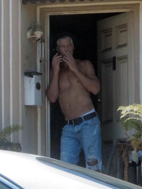 Την Δευτέρα κυκλοφόρησαν μερικές φωτογραφίες όπου ο 49χρονος στέκεται στο κατώφλι του σπιτιού του γυμνός από τη μέση και πάνω και καπνίζει ένα τσιγάρο. Οι κοιλιακοί του… μετριούνται στα δάχτυλα.