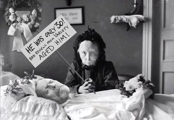 Ανέβασε επίσης, και μια απολαυστική φωτογραφία όπου βρίσκεται στο νεκροκρέβατο και από πάνω του μια μαυροφορεμένη γυναίκα με ένα πλακάτ που γράφει: «ήταν μόνο 30 ετών. Οι κακές κριτικές του Variety τον γέρασαν».