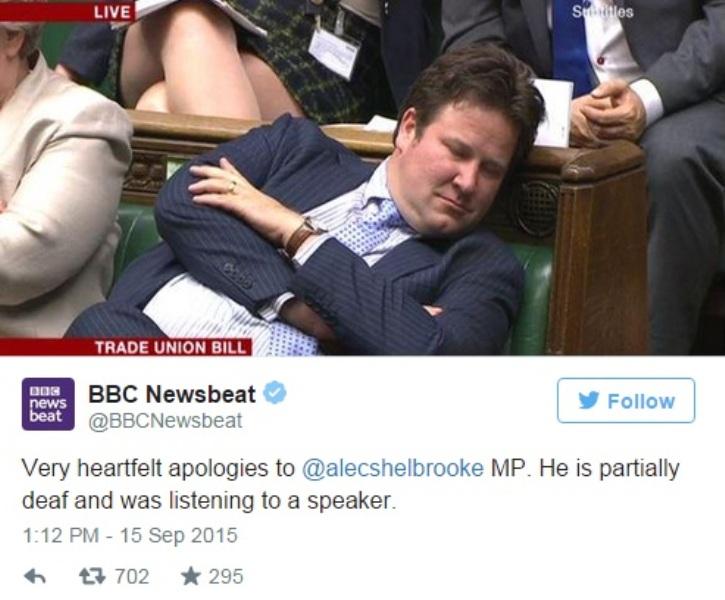 Σε μία γκάφα άνευ προηγουμένου υπέπεσε το BBC. Το βρετανικό δίκτυο έγραψε ότι ο βουλευτής, Άλεκ Σέλμπρουκ κοιμόταν την ώρα που βρισκόταν σε εξέλιξη συζήτηση στο κοινοβούλιο.