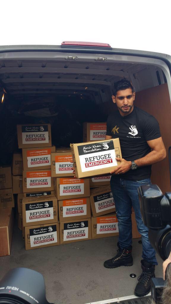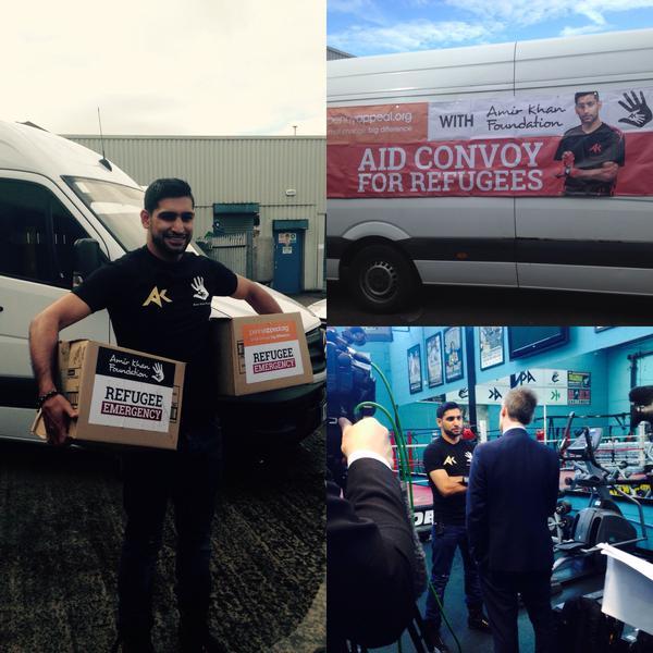 Ο Αμίρ Καν, ο οποίος κατάγεται από το Πακιστάν, έχει και στο παρελθόν συμμετάσχει σε διάφορες φιλανθρωπικές δράσεις με την πιο πρόσφατη τον Δεκέμβριο του 2013, όταν είχε συγκεντρώσει 83.400 λίρες σε φιλανθρωπικό δείπνο για τα θύματα του τυφώνα Χαϊγιάν.
