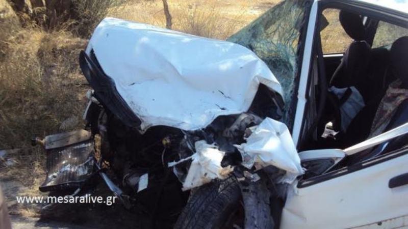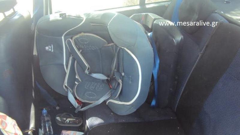 Δύο αυτοκίνητα με αντίθετη κατεύθυνση συγκρούστηκαν πλαγιομετωπικά σύμφωνα με την ιστοσελίδα mesaralive.gr με αποτέλεσμα να τραυματιστούν τέσσερα άτομα μεταξύ των οποίων και ένα μικρό παιδί, το οποίο ήταν δεμένο σε παιδικό καθισματάκι, ενώ οι επιβαίνοντες και στα δύο αυτοκίνητα φορούσαν ζώνες, κάτι που όπως φαίνεται στάθηκε σωτήριο.