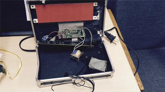 Ο μαθητής της τρίτης γυμνασίου, που φορούσε μια μπλούζα της NASA, απομακρύνθηκε από το σχολείο MacArthur σε χειροπέδες τη Δευτέρα γιατί έφτιαξε κάτι με σκοπό να εντυπωσιάσει τους νέους συμμαθητές και δασκάλους τους. Η αστυνομία τον προσήγαγε στο τμήμα, πήρε τα δακτυλικά του αποτυπώματα και τον φωτογράφησε. Αφέθηκε ελεύθερος όταν ήρθαν οι γονείς του να τον πάρουν.