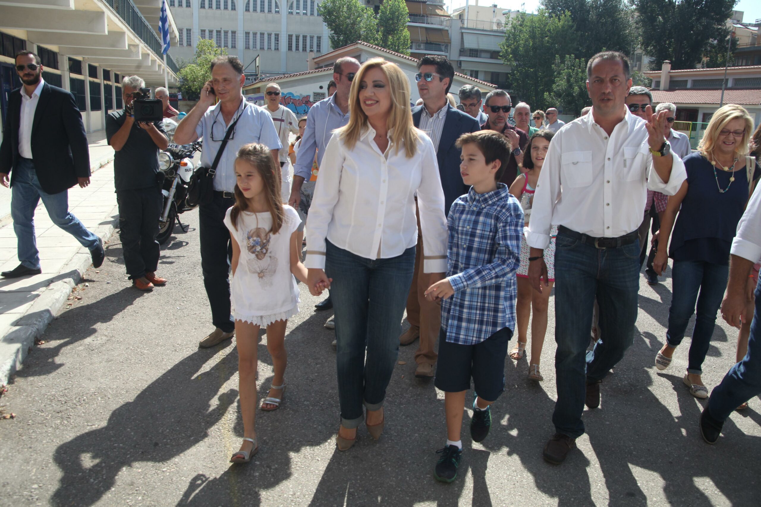 Φορώντας ένα απλό τζιν και συνοδευόμενη από τα δύο παιδιά της εμφανίστηκε στο 2ο Δημοτικό Σχολείο της Νέας Ιωνίας για να ασκήσει το εκλογικό της δικαίωμα η πρόεδρος του ΠΑΣΟΚ, Φώφη Γενννηματά.